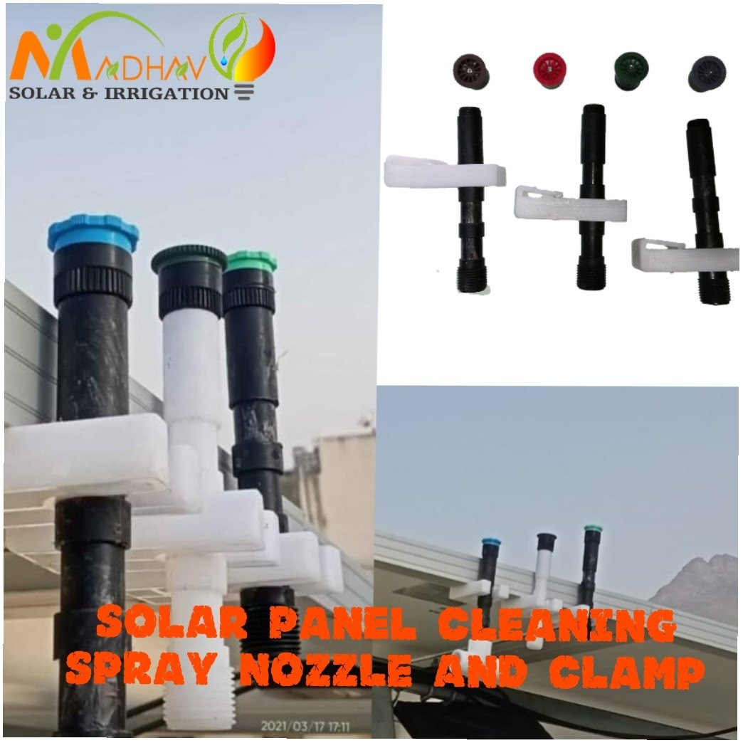 Solar panel Cleaning Nozzle with plastic clamp || Adjustable solar panel cleaning nozzle || 0 to 360 spray nozzle * 4 feet to 17 feet variants available * Uniform water spreading * High range with low water consumption * No zunk and corrosion due to plastic clamp solar panel cleaning sprinkler. adjustable solar panel cleaning sprinkler. Adjustable solar panel cleaning nozzle. adjustable solar panel cleaning nozzle in Gujarat. adjustable solar panel cleaning nozzle in Rajkot. adjustable solar panel cleaning nozzle in Ahmedabad. adjustable solar panel cleaning nozzle in Surat. adjustable solar panel cleaning nozzle in Vadodara. adjustable solar panel cleaning nozzle in Surat. adjustable solar panel cleaning nozzle in Bhavnagar. adjustable solar panel nozzle in Jamnagar. adjustable solar panel Morbi. adjustable solar panel planning nosal Maharashtra. adjustable solar panel cleaning nozzle in Nagpur. adjustable solar panel cleaning Nozzle in Pune adjustable solar panel cleaning nozzle in Delhi. adjustable solar panel cleaning nozzle in Ludhiana adjustable solar panel cleaning nozzle in Noida. adjustable solar panel cleaning nozzle in Faridabad. adjustable solar panel cleaning nozzle in Gurgaon. 0 to 360° solar panel cleaning. 360 degree solar panel cleaning nozzle. 360 degree solar panel cleaning sprinkler.